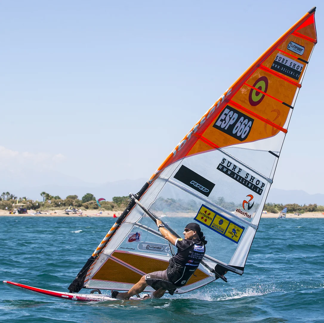Concerning my results, in the 2016 European Slalom Championships I ranked 18 in masters. In 2017 I entered the first Professional event organized by the Professional Windsurfing Association (PWA). Thanks to everything I have learned in that event I climbed to 5th place in masters at the 2017 ISAF-IFCA European Slalom Championships, taking 1st place in the overall ranking of Spanish slalom sailors in the IFCA international slalom ranking. In 2018 and 2019 I have been the only Spanish windsurfer competing in both slalom circuits, both in the Federative windsurfing circuit (IFCA, International Funboard Class Association) and in the Professional one (PWA), being recognized as a Professional windsurfer and Official PWA Competitor. After the break that the competition suffered in 2020 due to the SARS-CoV-2 I´m back in 2021 more motivated than ever and with the support as sponsors of Bellini Surf Shop, LoftSails, GoyaBoards, Unifiber and GasoilFins!