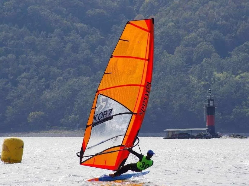 Tongyeong city is like a wonderland - but a wonderland with light winds! Marginal breezes mean that the the most used board is a 380cm raceboard.