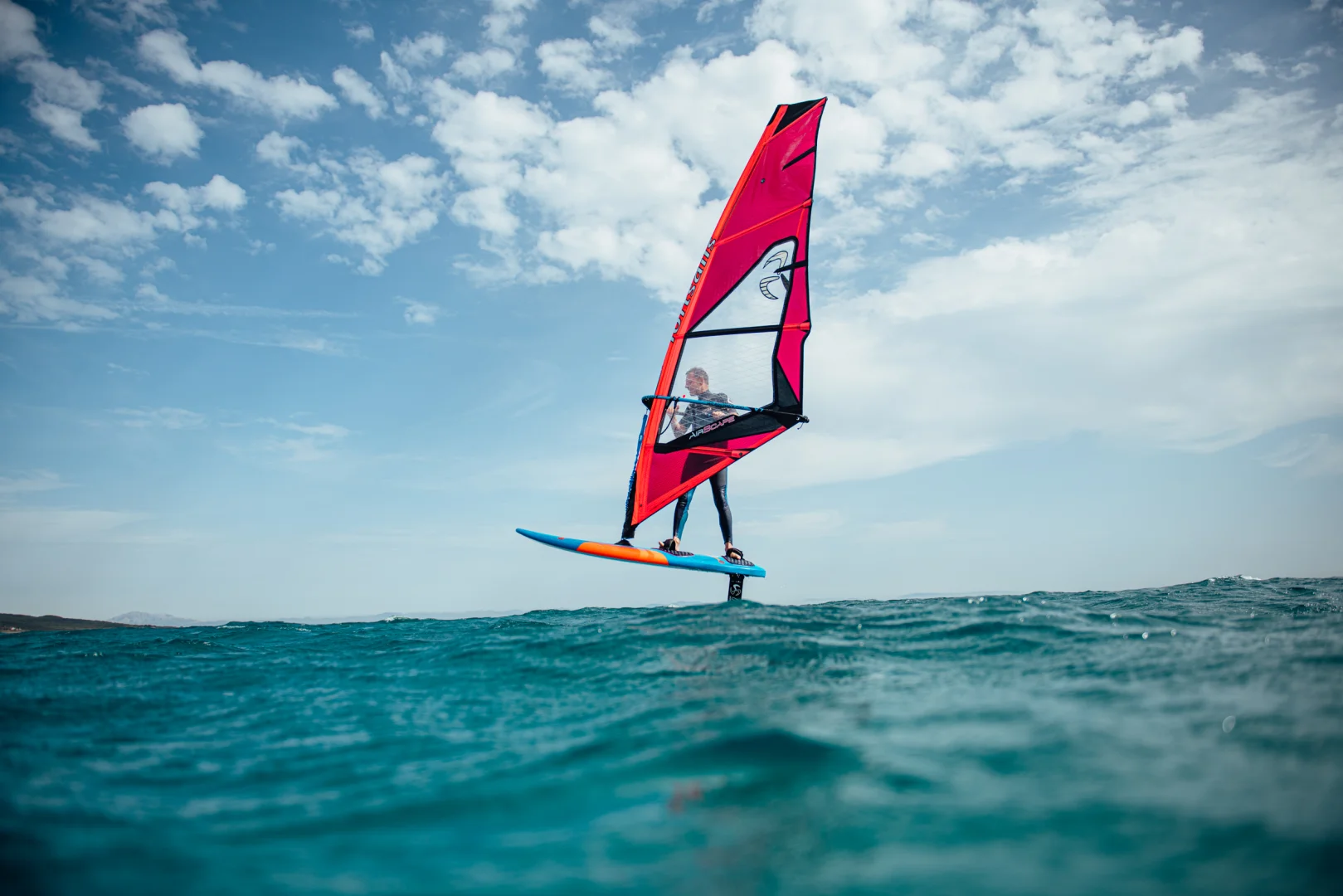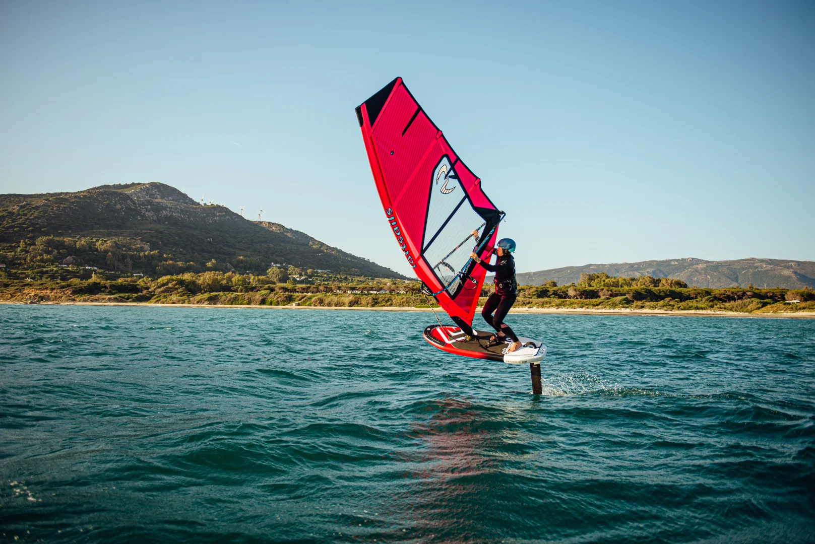 The same qualities that make the Airscape an exceptional freestyle sail also translate into easy and stable freeride foiling performance. Its high aspect ratio balances the low-drag hydrofoil underneath.