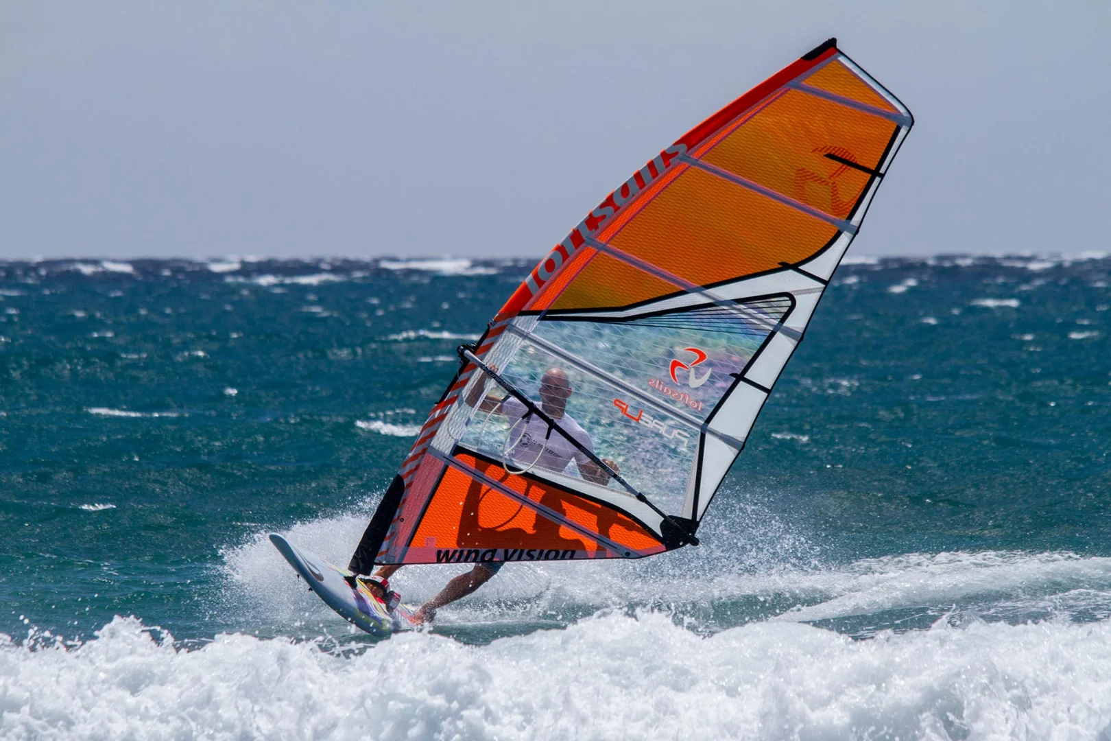 With totally new design parameters for 2017, the all time classic Purelip – again a test winner, scooping both Coupe de Coeur in Planche Mag AND Testers’ Choice in WIND Mag in 2016 – delivers further expanded trim reactivity and effective range of use with a softer, easier character. Loftsails reduced the boom lengths on the larger sizes while increasing that aspect ratio on the smaller models. The profiles are deeper for 2017, complementing the luff curve updates that Monty Spindler and his all new test team in Tarifa have made. The result is further stability and increased multipurpose suitability for the wide spectrum of conditions you may encounter on any given day at the beach. Build quality is a given with all Spindler-designed sails and the all x-ply construction, 5-mm. foot and 4-mm.-biax window panels will withstand a ton of abuse and forgive mistakes as you push your level. Mag tests keep confirming the crossover/bump ‘n jump and light-wind wavesailing prowess on the larger sizes while praising the stability and ease of use of the smaller sizes in harsh conditions (especially for lighter riders). 90% of wave sailors would need very specific, strong reasons not to select a quiver of Purelips for radical sailing in either tough conditions or epic surf.
