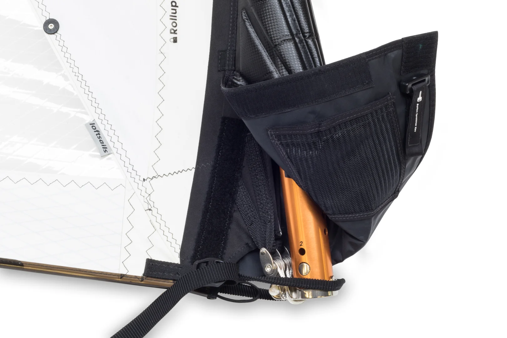 - Streamlined neoprene boom cutout with dual zippers – limits water entry into the mast sleeve for fast recovery