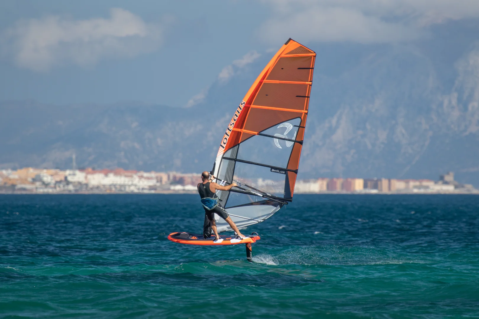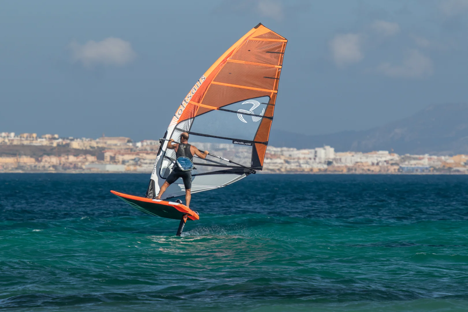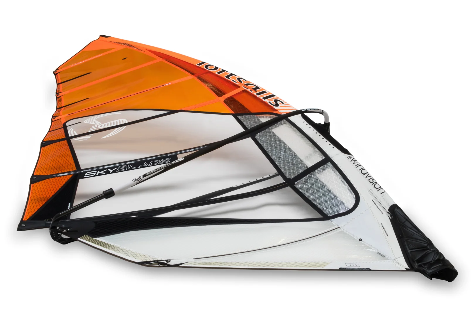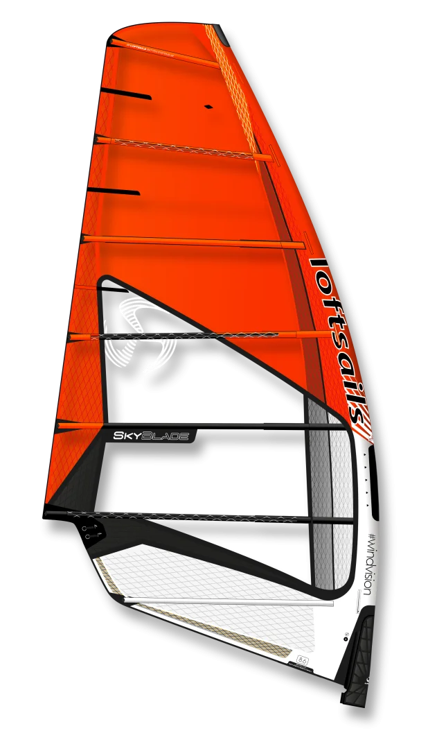 Windfoil race dedication: 7 battens, 4 cams, two sizes - 8.6 and 9.4. The Skyblade contrasts with the Racingblade in one important way: downforce. Greater downforce allows better control of foil lift.