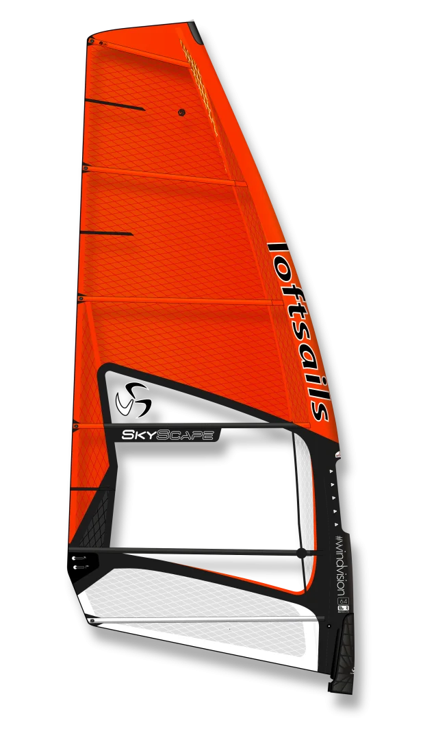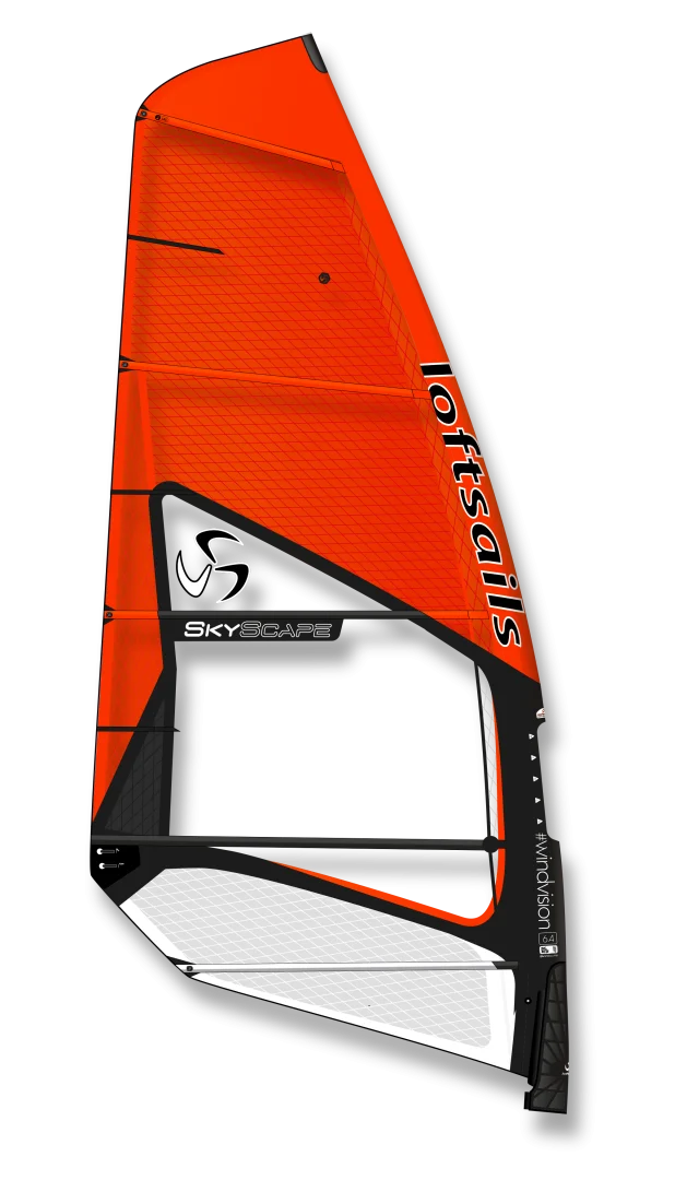 Their newly evolved profiles and dimensions improve early flying ability. These 5-battens 3-cam designs have a moderately-narrow mast pocket. They are particularly well suited to light winds and across-the-wind foiling. The new high-aspect Skyscape 8.0 and 9.0 are 6-batten 3-cam designs with moderately wide mast pockets. They are especially powerful in light winds, and very well suited to upwind / downwind foiling courses.