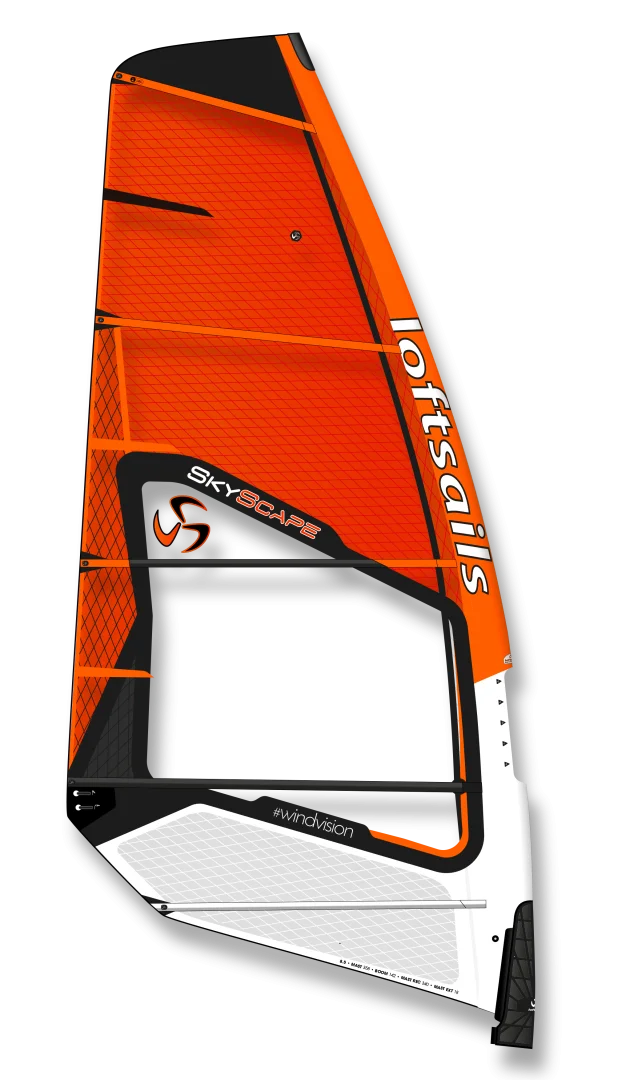 The Skyscape 5.8 6.4 and 7.0 sizes retain their moderate width mast pockets, 5-batten 3-cam configuration, and soft leech twist character.