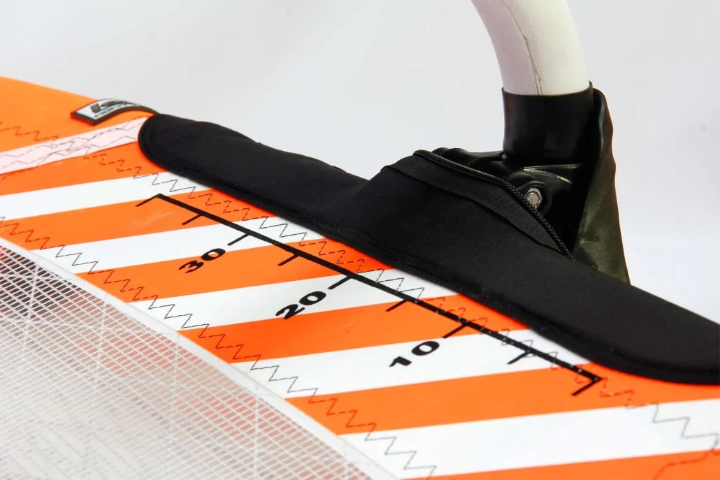 - Streamlined neoprene boom cutout with dual zippers – limits water entry into the mast sleeve during falls, keeping the rig light for a fast recovery